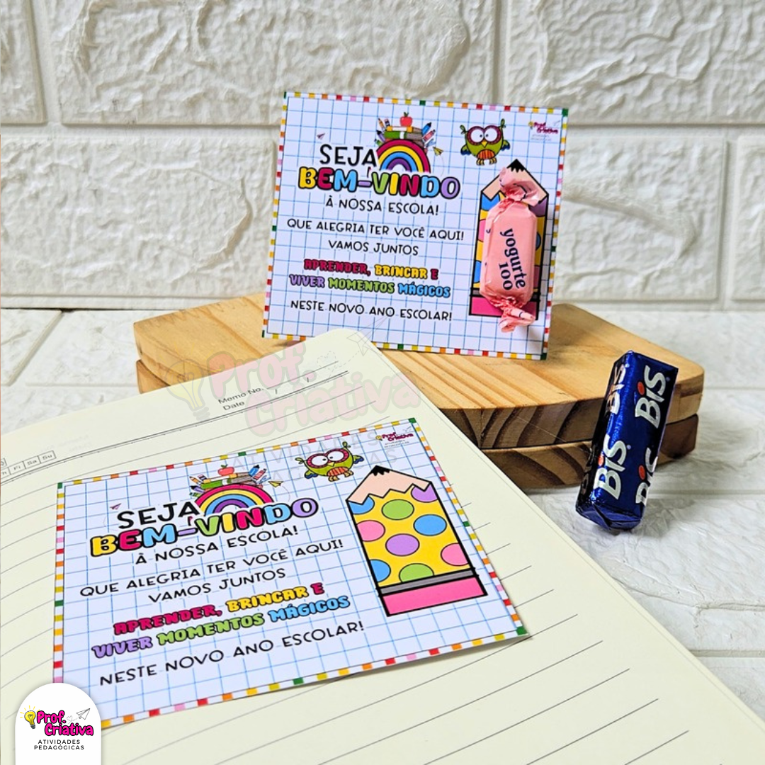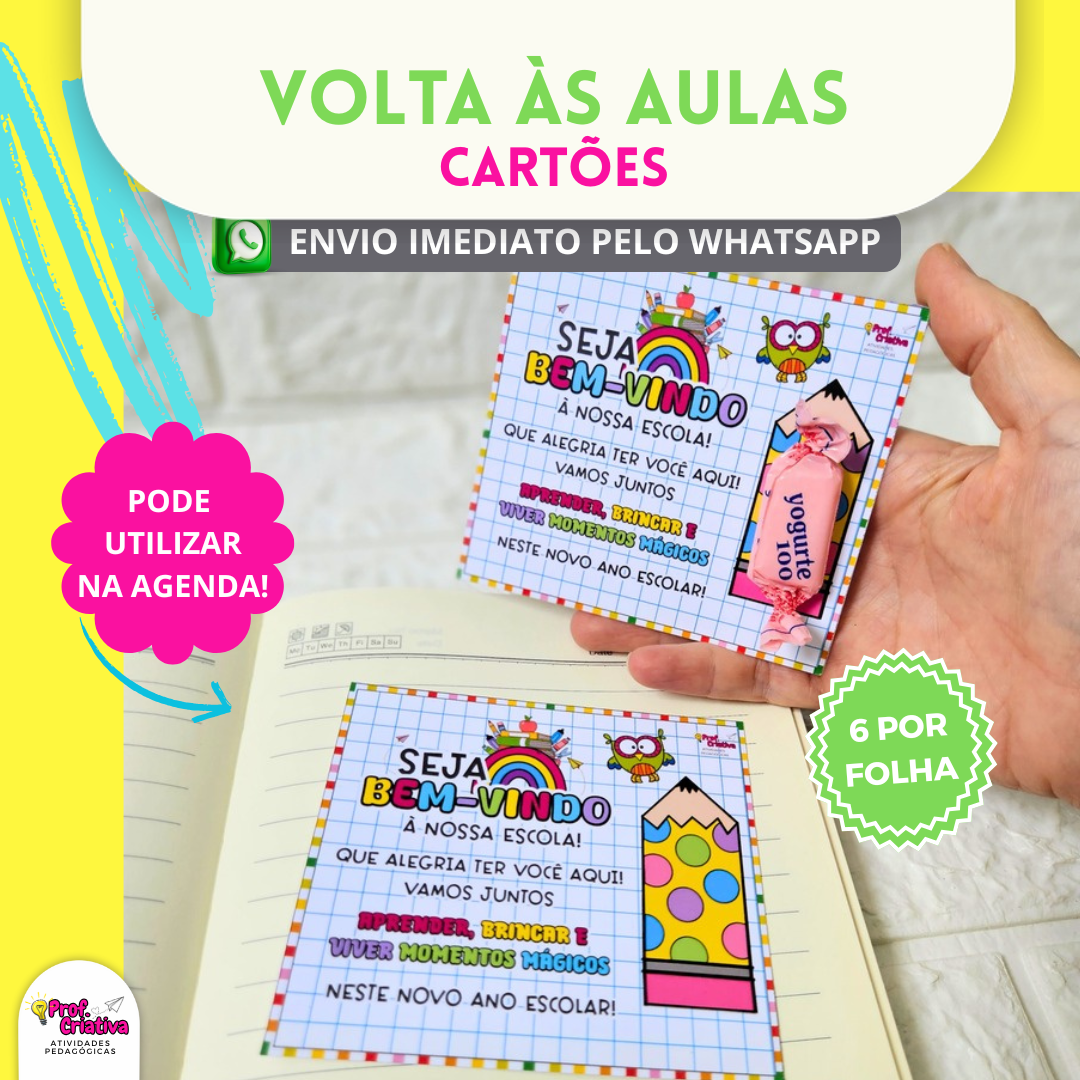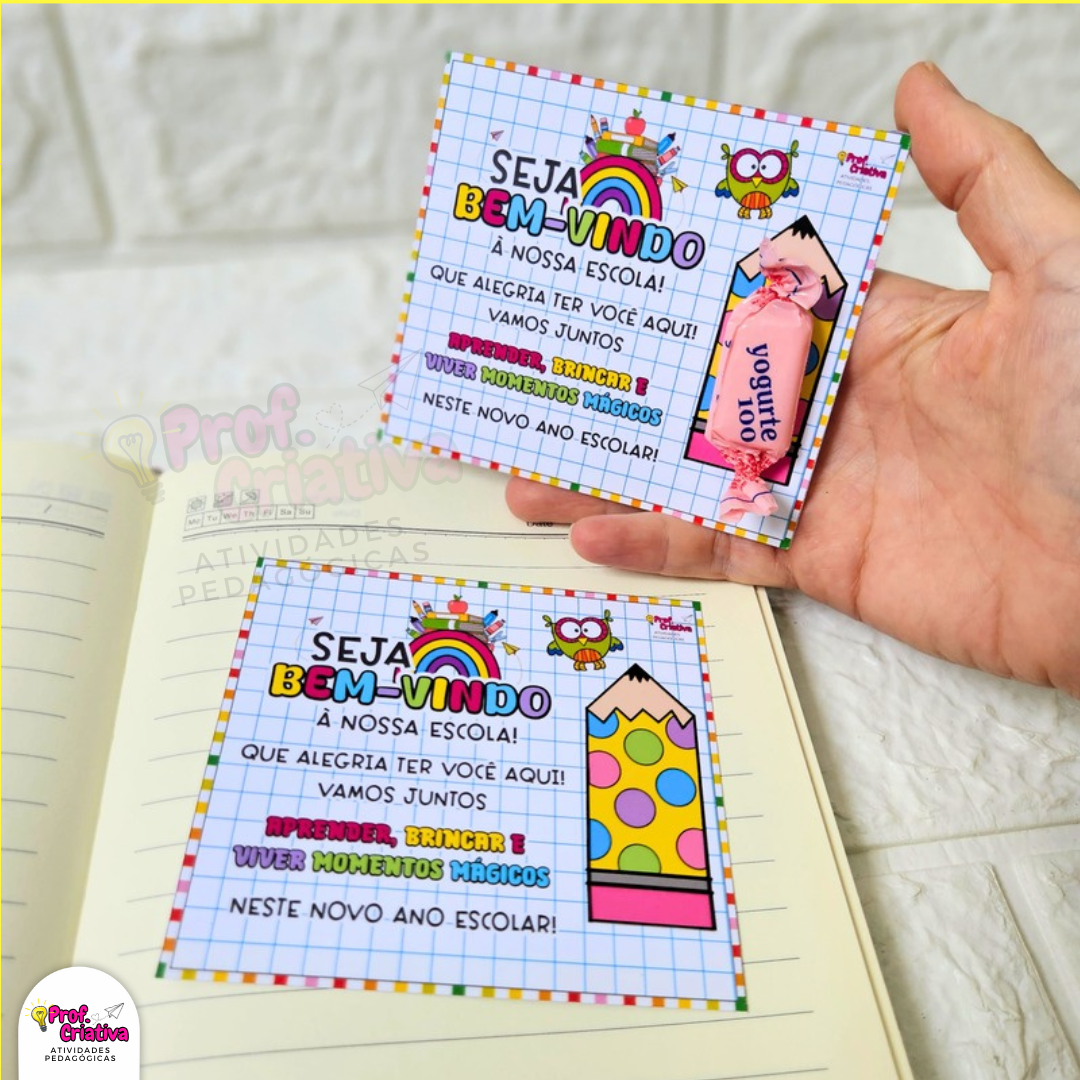 🎯 Cartões para agenda ou lembrancinhas, para recepcionar os alunos de forma carinhosa.