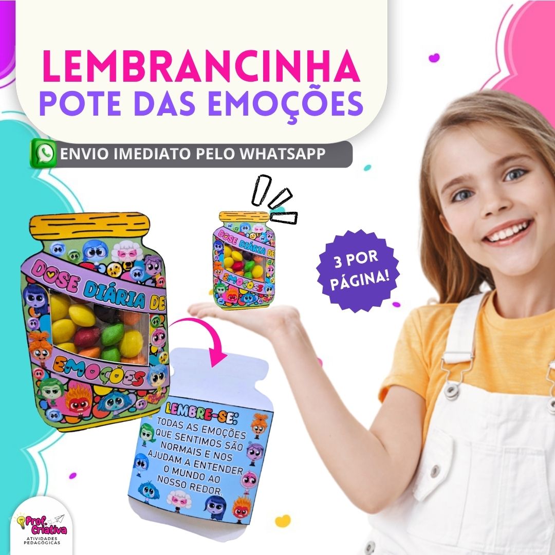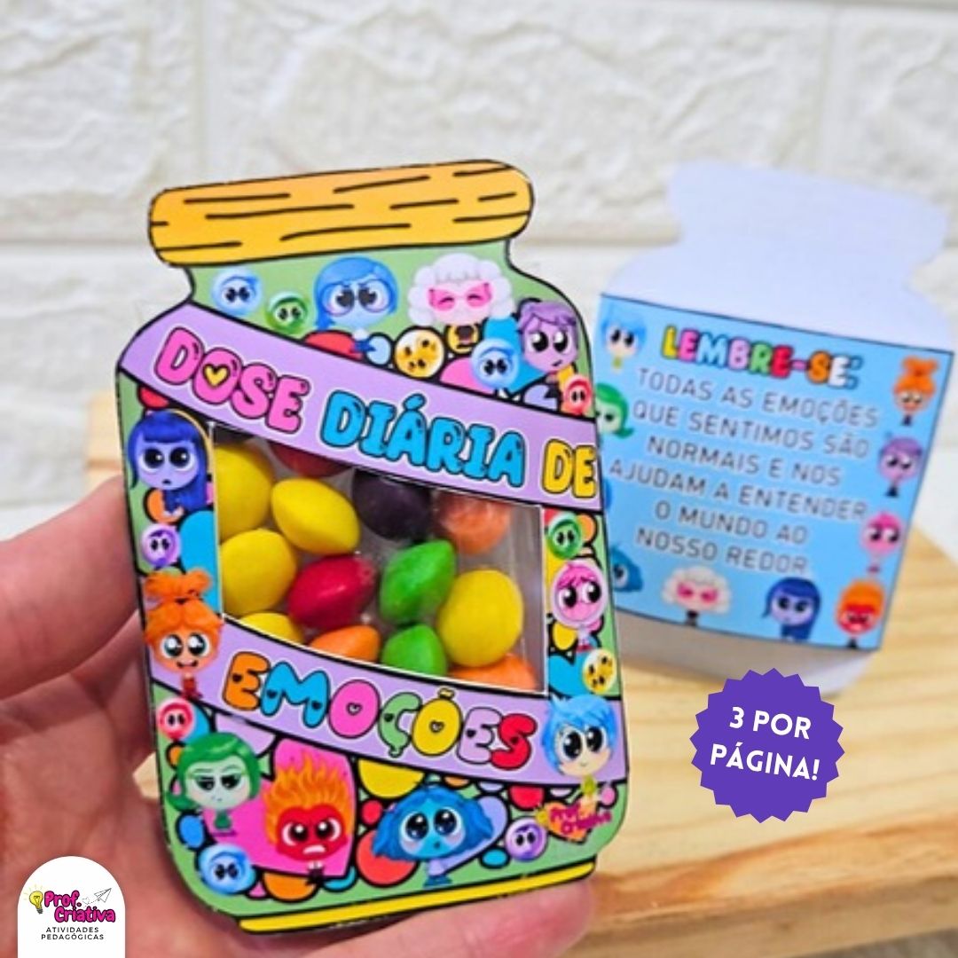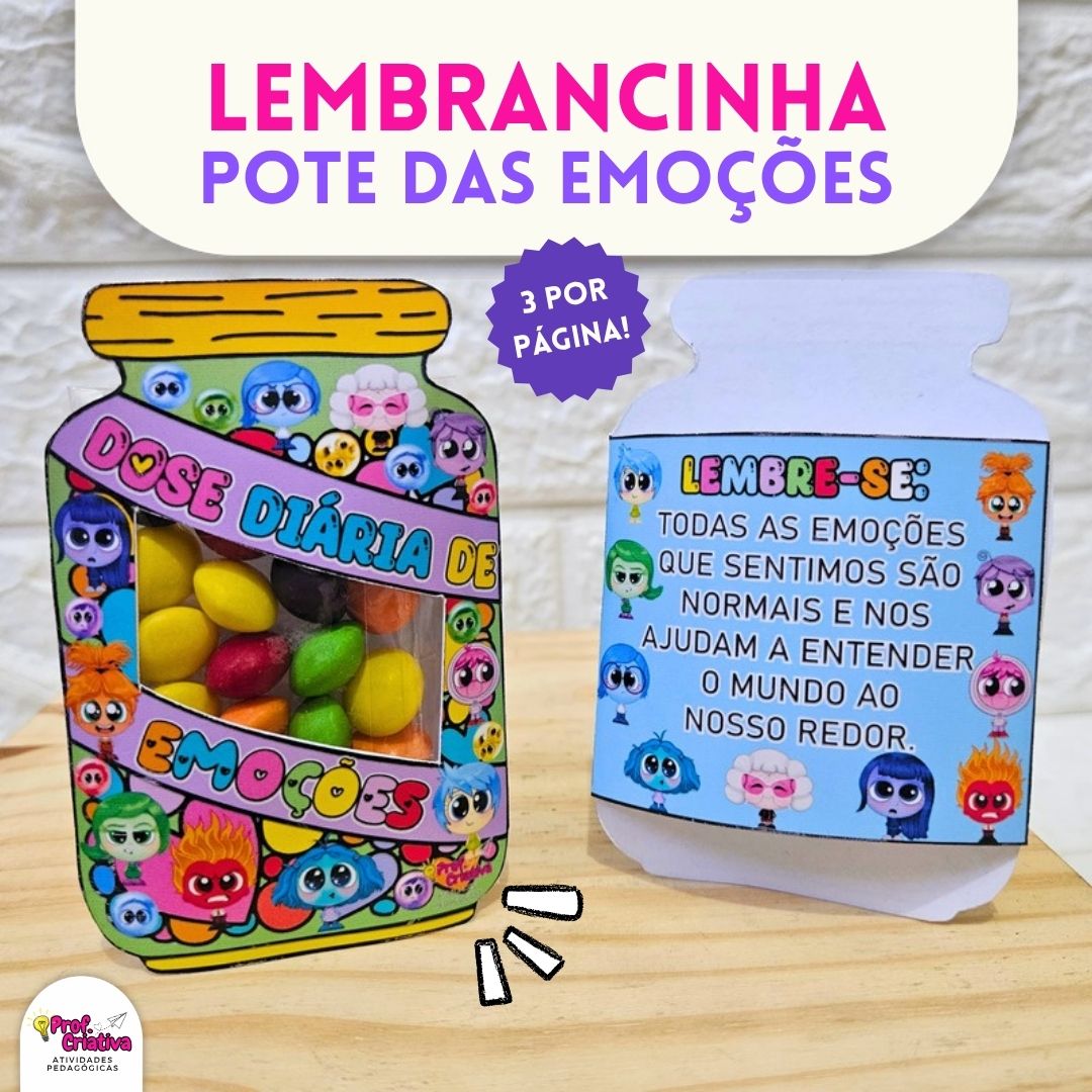 🎯 Lembrancinha especial para celebrar o aprendizado sobre emoções! Após trabalhar os sentimentos com as crianças, presenteie-as com esse mimo divertido e encantador com os personagens do filme Divertida Mente.