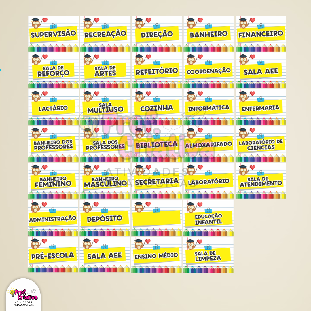 🎯As Plaquinhas de Identificação são ideais para deixar os ambientes escolares mais organizados, funcionais e visualmente atrativos. Perfeitas para identificar salas, setores e espaços da escola de forma clara e padronizada.
